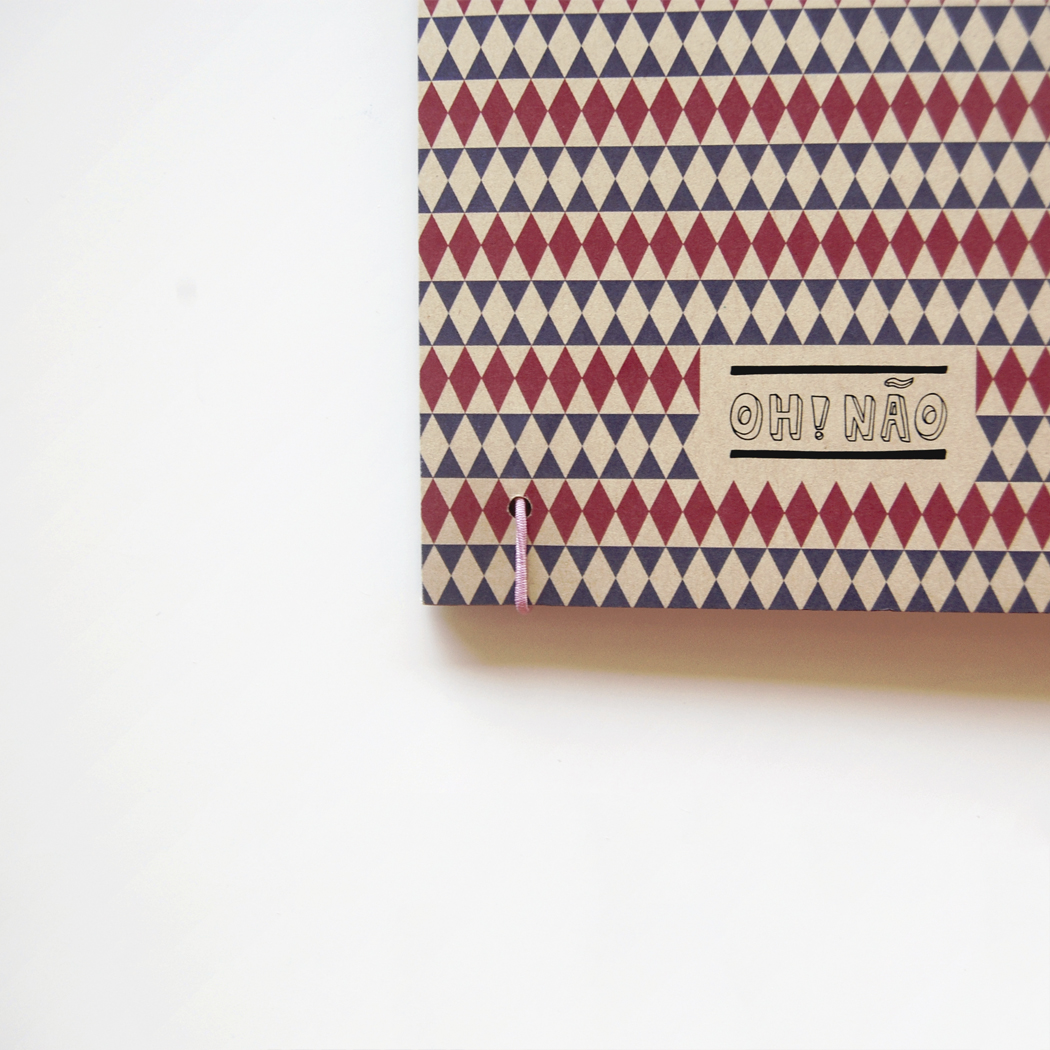 • Bloco de notas com padrão geométrico e etiqueta OH! NÃO