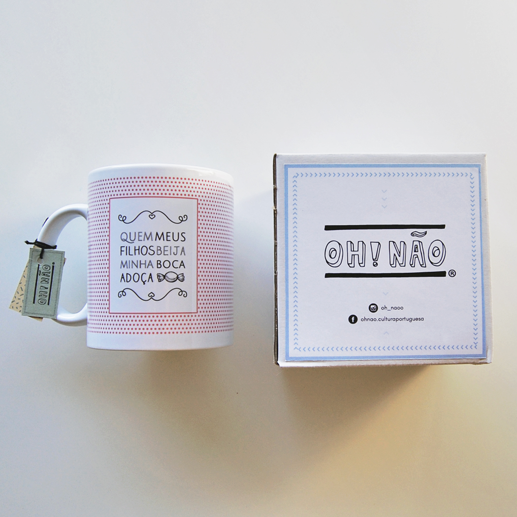 Caneca "Quem meus filhos beija minha boca adoça" 14,95 € Desconto de %. Partilhar Comprar Contactar SKU: CeCqmfbmbaM04 Todos os nossos produtos são 100% portugueses e temos como missão divulgar e promover a nossa cultura. Caneca com o provérbio "Quem meus filhos beija minha boca adoça" Descrição do produto: – Dimensões: 100 mm de altura – Caneca de Cerâmica /// Se o produto não estiver disponível online pode entrar em contacto connosco para solicitar o mesmo através do e-mail: ohnao.culturaportuguesa@gmail.com /// Todos os produtos que não estão disponíveis online podem demorar cerca de uma semana para produzir e serem enviados. Obrigada pela sua preferência!