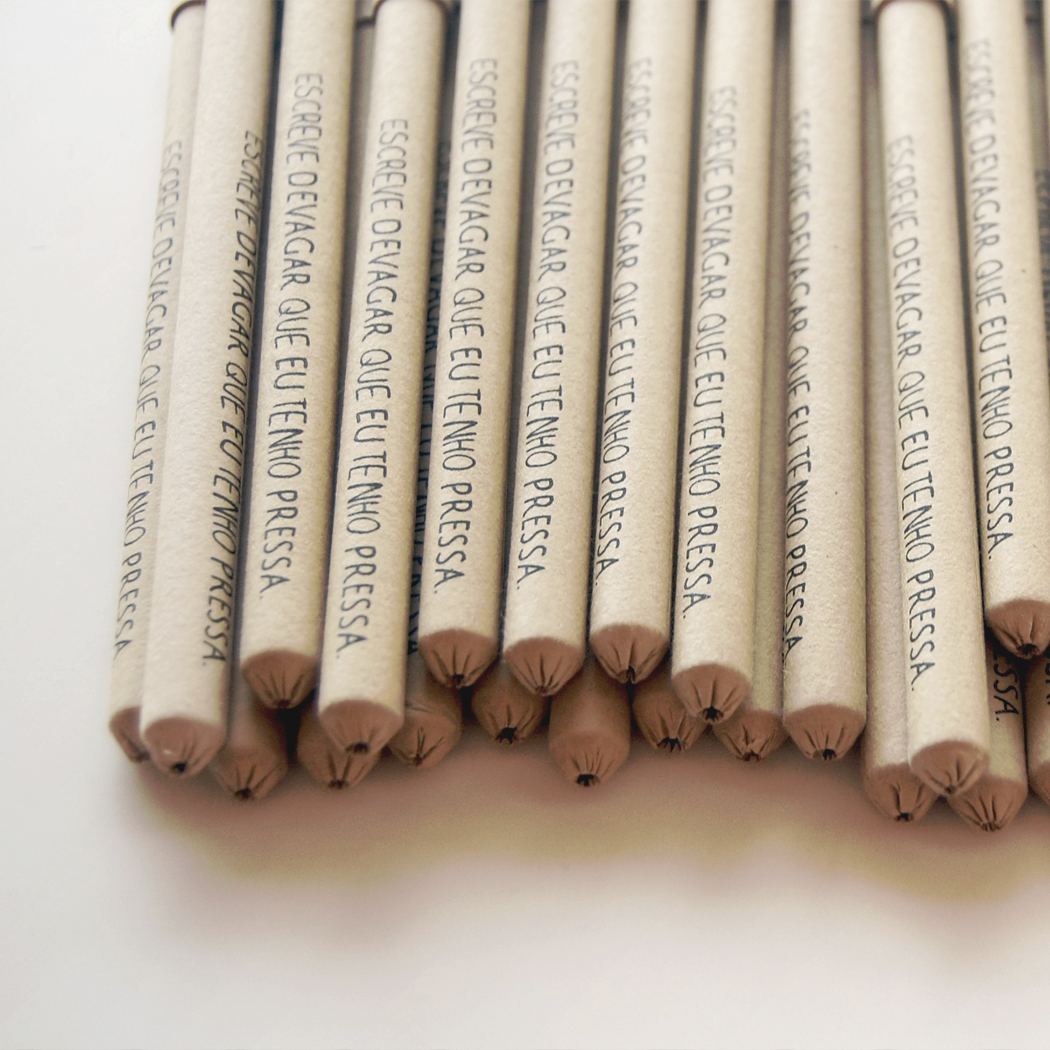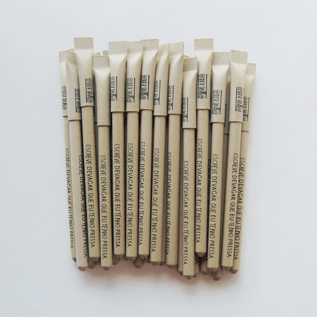 Canetas 100% portuguesas com o provérbio – "Escreve devagar que eu tenho pressa."