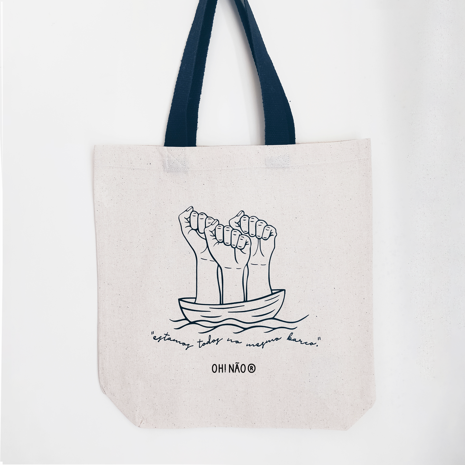 Saco de Pano "Estamos todos no mesmo barco" 13,95 € Desconto de %. Partilhar Comprar Contactar SKU: SPeM02CiPcAp Todos os nossos produtos são 100% portugueses e a missão desta marca é divulgar e promover a cultura portuguesa. Saco de Pano: "Estamos todos no mesmo barco" Descrição do produto: – Saco de Pano Crú com alça diferenciada de cor preto – Dimensões: 36 x 39 x 9 cm – Composição: 100% Algodão – Lavagem – máx. 30ºC. – Lavar e passar do avesso. /// Faça já o seu pedido!Qualquer dúvida pode enviar um e-mail para: ohnao.culturaportuguesa@gmail.com